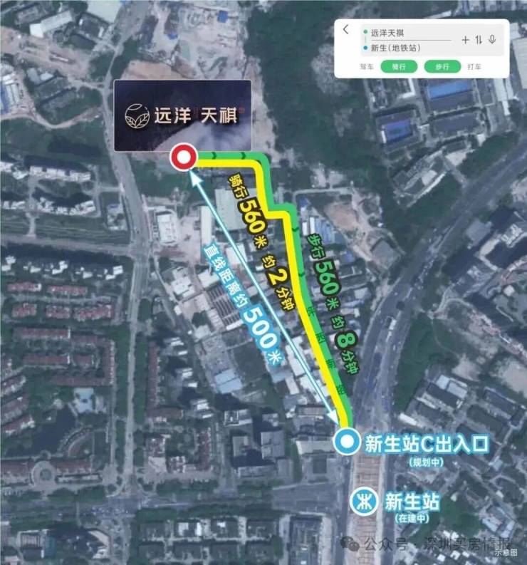 远洋天祺距离地铁3号线东延线和21号快线双轨交汇“新生站”直线距离仅约500米,是片区离地铁最近的在售项目,未来还有深惠城际前海保税区至坪地段,全长58公里,时速160公里/小时,以后从项目到南山、前海也很方便快捷。