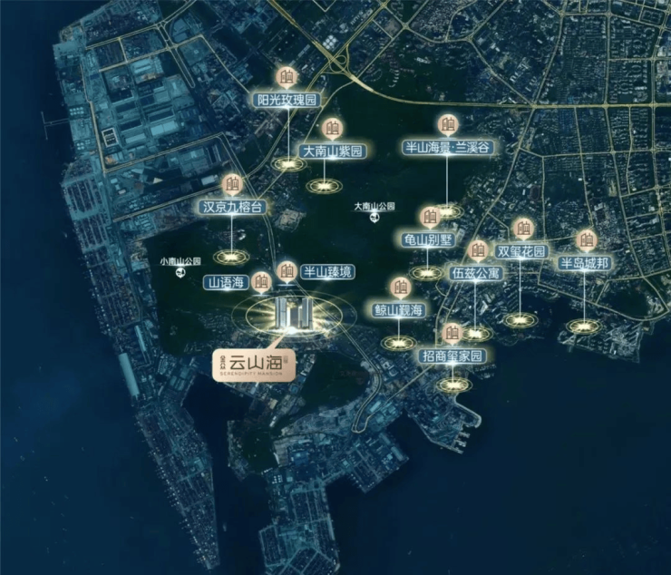 项目坐落于蛇口豪宅带,半山臻境、山语海、鲸山觐海、汉京九榕台、兰溪谷、龟山别墅等众多豪宅择址于此,进阶高端圈层生活。