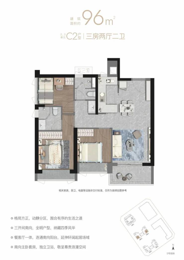 2、部分户型临近主干道和受“天铁”的噪音影响