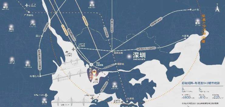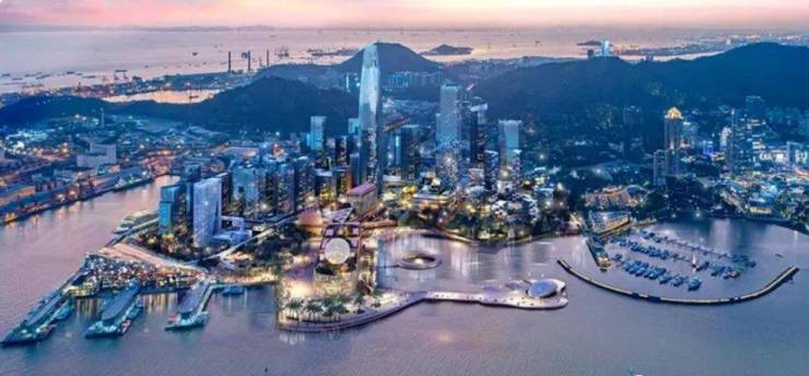 超级湾区粤港澳大湾区为世界经贸集散地,在此再度勃兴,拥有3大世界级邮轮母港、5大千亿级国际空港,港口货柜吞吐量约6800万标箱,机场货邮量超810万吨,旅客量约2.23亿人次。 「9+2城市动脉」超级矩阵,处粤港澳大湾区前排,战略位置无可复制。大湾区为国家战略,由港澳及广东9个珠三角城市构成世界级城市群,是中国开放度最高、经济活力最强区域之一。 深圳超级门户「太子湾邮轮母港」启幕,这是招商蛇口保留的优质地块,斥资3000亿,联合全球大师打造170万㎡航母级国际滨海城,如悉尼Darling Harbour般代言城市繁华。片区规划70万㎡高端商务集群,含382米超甲级写字楼新地标,还有超五星级酒店、旗舰商业、国际学校、医院等城市功能。