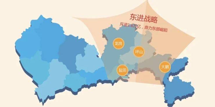 深圳东进战略约1.4万亿,坪山独占约60亿,定位深圳东部都市圈中心,打造四大千亿级产业集群。