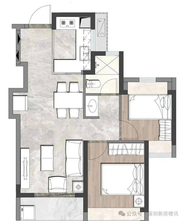 最低门槛67㎡2房、79㎡3房1卫,开盘有一定折扣优惠,最低预计总价300多万上车2房,是目前整个龙华区域在售新盘中算是最低上车门槛。