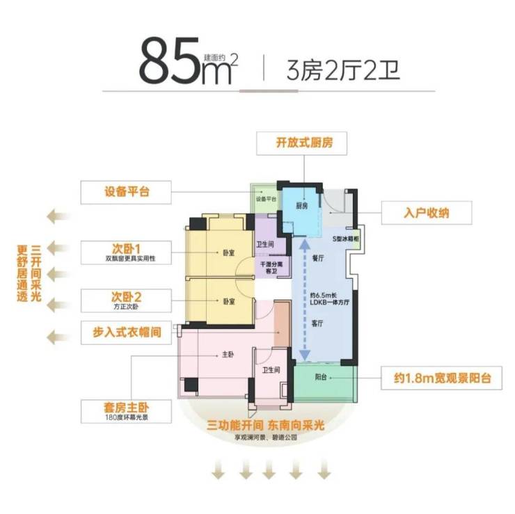 【户型面积】约75-85㎡3房2卫,约94-105㎡4房2卫