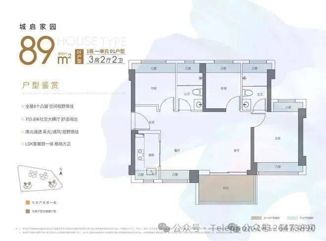 西南或东南向,户型是横厅南北通透格局,客餐厅5.8米开间,主卧双飘窗南北通设计,8个飘窗加阳台使用率在90%左右。
