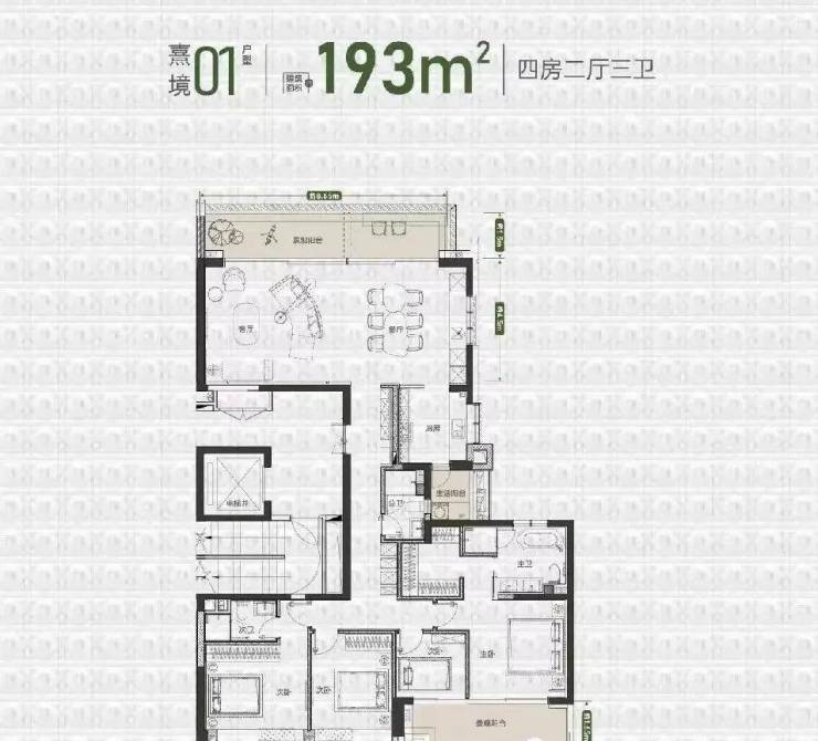 193-203平四房三卫,单价9.3~10.5万,总价1850~2040万