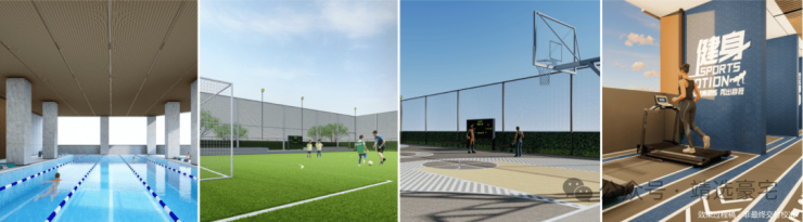 游泳馆、篮球场、mini足球场、儿童游乐场地、健身活动场地等活力功能区;
