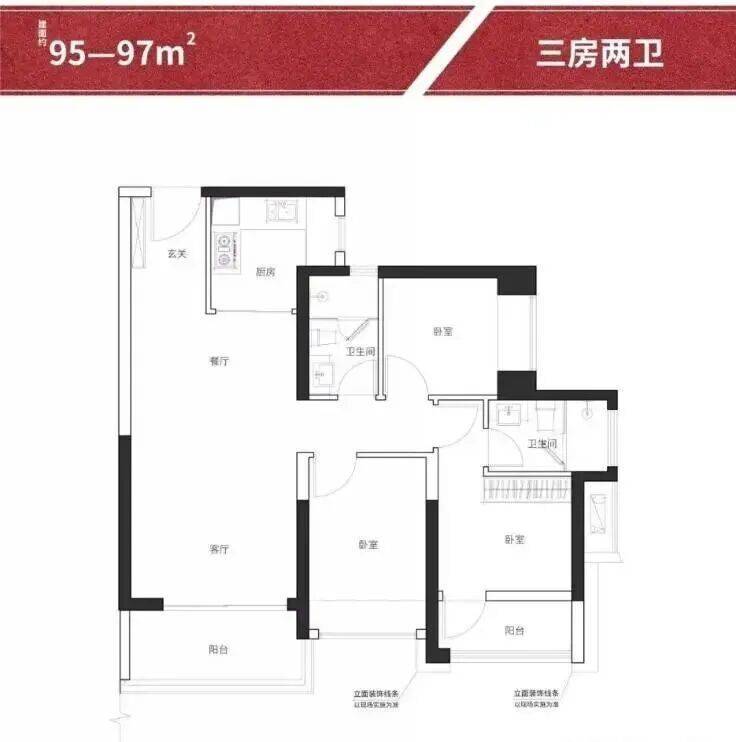 2.建筑面积约95-97㎡户型