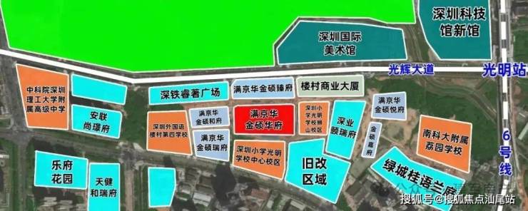 满京华金硕,前身为光明狮山利益统筹项目,由满京华集团全盘操刀,涵盖有10块用地,总占地面积约10.9万㎡,总建筑面积约32.38万㎡,其中住宅用地有7块,返还用地1块,公共绿化用地2块,住宅用地有:满京华金硕和府,满京华金硕瑞府,满京华金硕臻府,满京华金硕华府,满京华金硕悦府,满京华金硕嘉府。