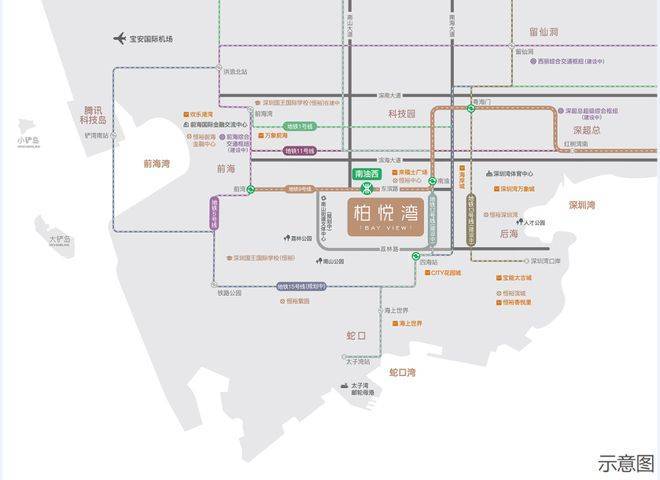 交通方面:·多维路网:东滨路、南海大道、南山大道、广深沿江高速、月亮湾大道、滨海大道等。