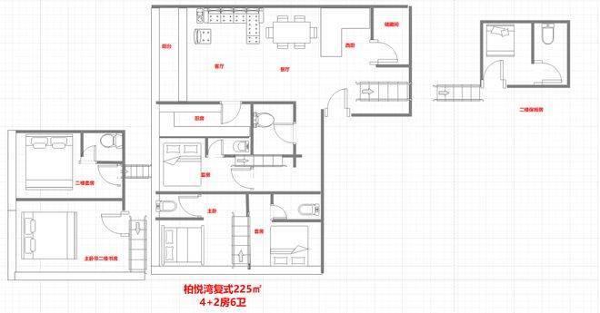 225㎡4+2房6卫