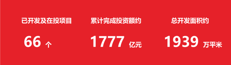 累计获得国家广厦奖、华鼎奖、美国MUSE金奖、美国TITAN金奖、第七届LA园匠杯年度地产示范区景观优秀奖等数十项荣誉,截至目前,累计开发地产项目66个,计划权益总投资额1777亿元,开发面积1939万平方米,经营触角延伸至4省13市,并重点向北上深等高能级城市布局。
