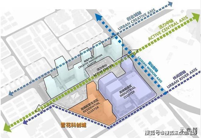 项目以“四轴三片区”为规划理念,串联南北的活力中轴、沿新圳河的休闲碧轴、沿主干道打造创业城轴和留仙智轴,围合形成新型产业区、高端制造区和高端配套生活区,打造成功能符合、分区明确的智创高地。