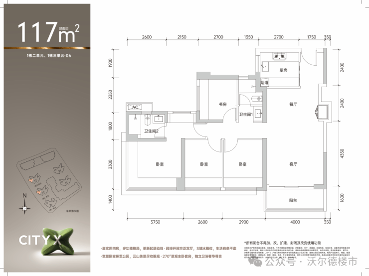 全明设计大景观视野,约3.6米开间宽活阳台;全南向客厅及卧室,主卧270°宽景采光