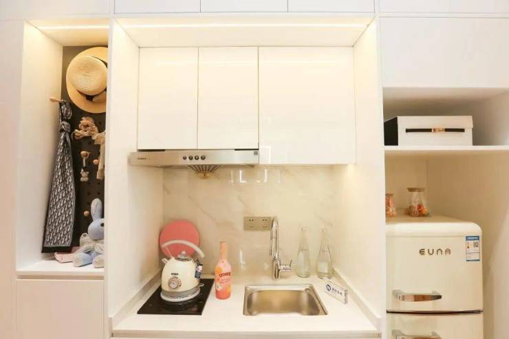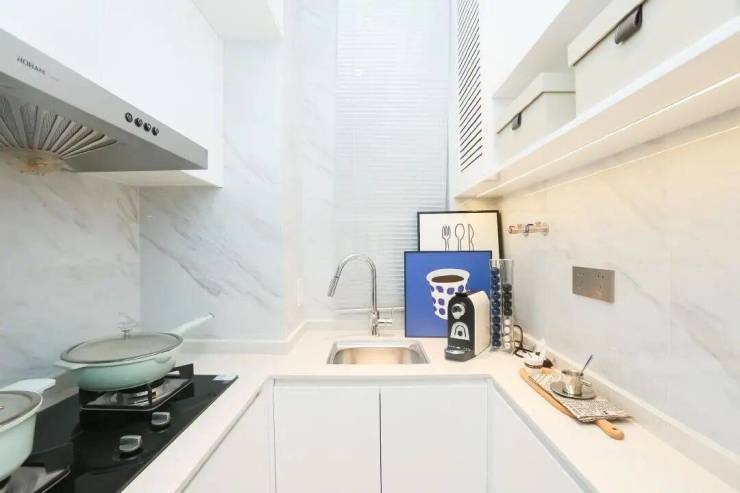 厨房从实用性和美观性出发进行设计,增强厨房的空间收纳功能的同时避免空间杂乱。