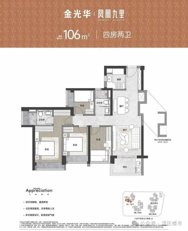 建面约67-106㎡二至四房舒居美宅,承袭金光华精工匠造标准,以通风采光俱佳、多开间朝南向、全屋多飘窗,多维收纳系统等特点,为业主提供高规格高品质的人居生活。