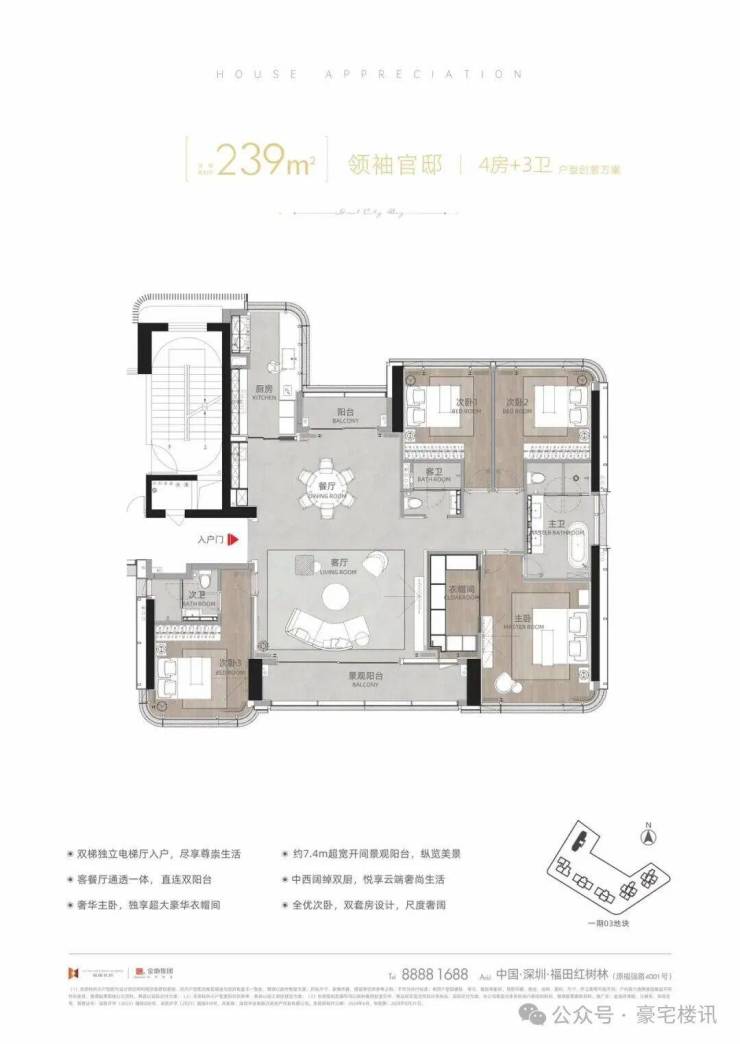 建面约239㎡领袖官邸4房+3卫(T12-01/02)