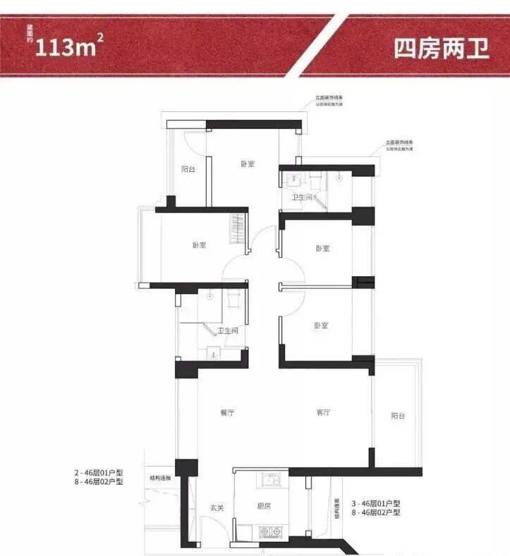 3.建筑面积约111-115㎡户型