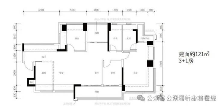 三、建面约121㎡户型:堪比旧规140+㎡户型