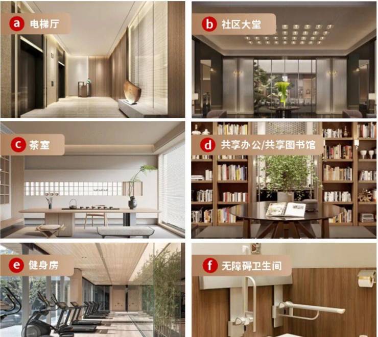 社区会所:精装社区接待大堂,嵌入茶室、共享办公/图书馆、健身房等多功能空间,打造社区品质格调的邻里交流天地。