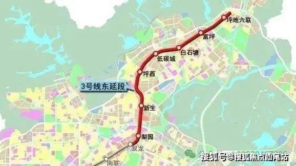 3号线东延段(建设中)、21号线(规划中)新生站,步行距离约1.5公里左右,3号线预计2025年通车,距离项目最近的地铁站是(新生站),这个站点是个枢纽中心,有两条地铁进入,第一条是三号线东延线,这条线2016年已经动工,只有7个站,从目前的双龙地铁站延长到坪地六联,但由于拆迁难度大,开工一年后停工,重新申报走地下,目前已经重新复工建设,预计2025年通车。另外一条就是规划当中的21号线,从前海到坪地的一条快速线,这条线路规划从龙岗到前海只有十个站左右,动工时间待定。