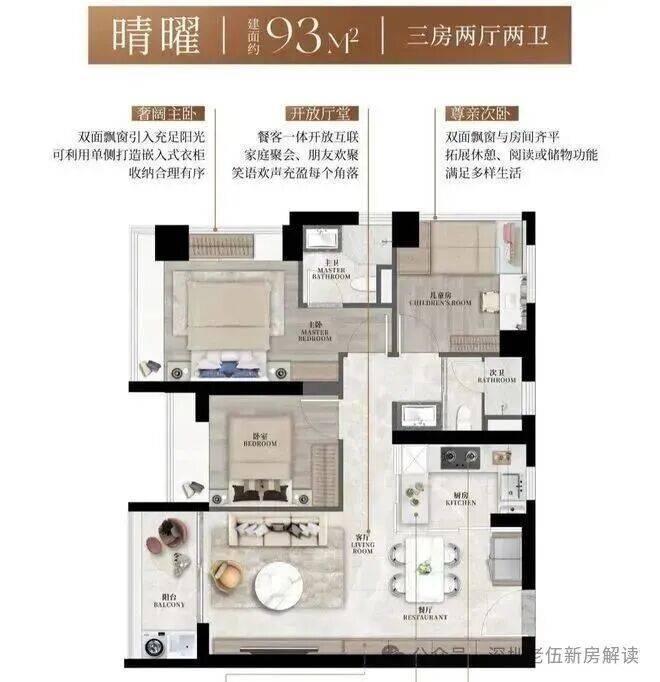 【建筑面积93㎡3房2卫】