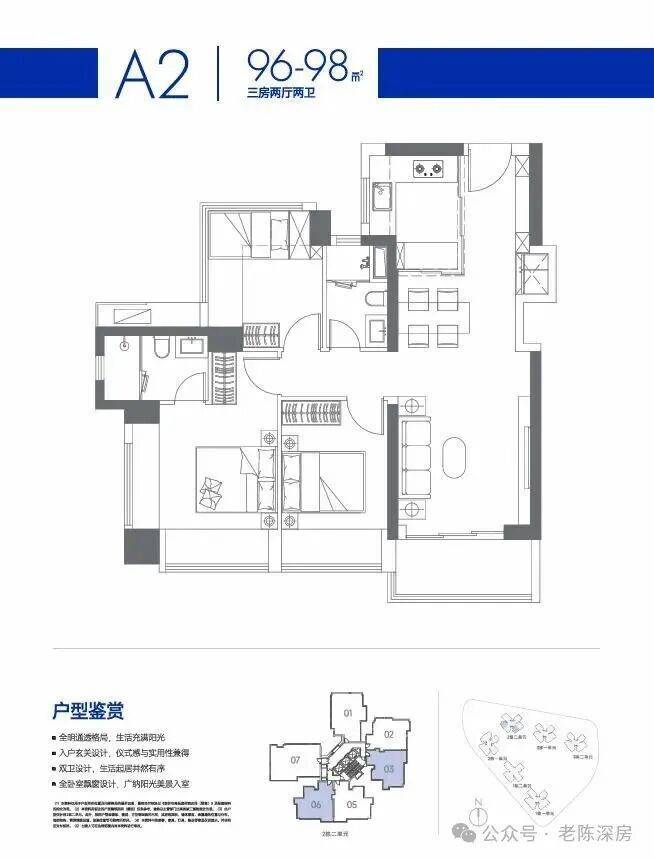 A2/A3户型(互为镜像):约97-98㎡3房2厅2卫