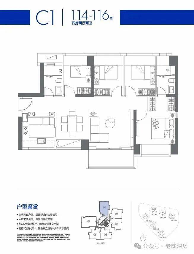 C1户型:约114-116㎡4房2厅2卫