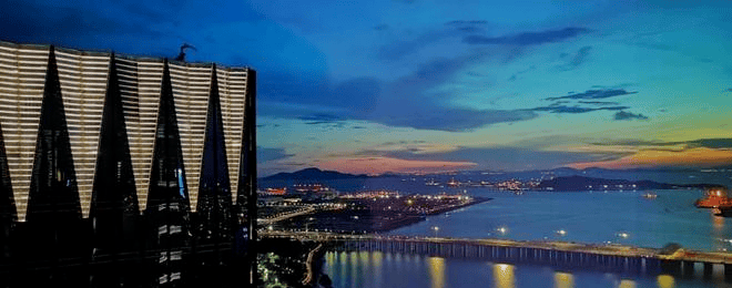 项目是由纽约新世贸缔造者美国兆华斯坦携手深圳恒裕集团在前海桂湾首排打造的一线海景商务地标综合体。