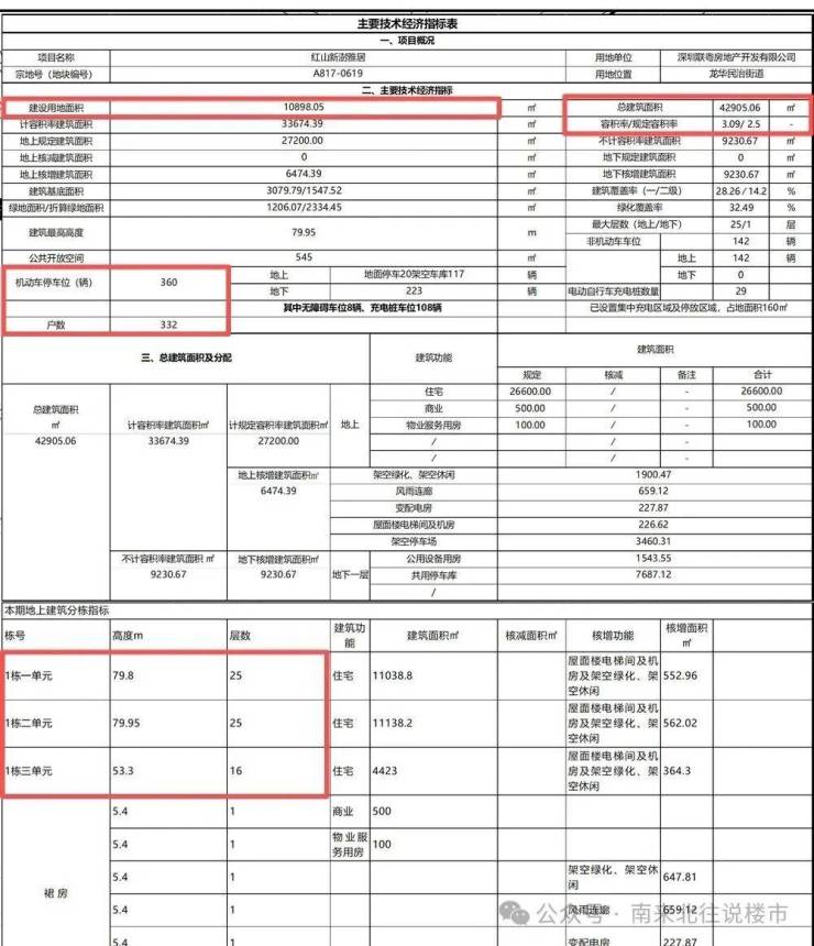 项目总规划户数332户,由3栋住宅组成,其中1栋一单元和二单元总高25层,2梯6户;三单元总高16层,2梯4户;车位360个!