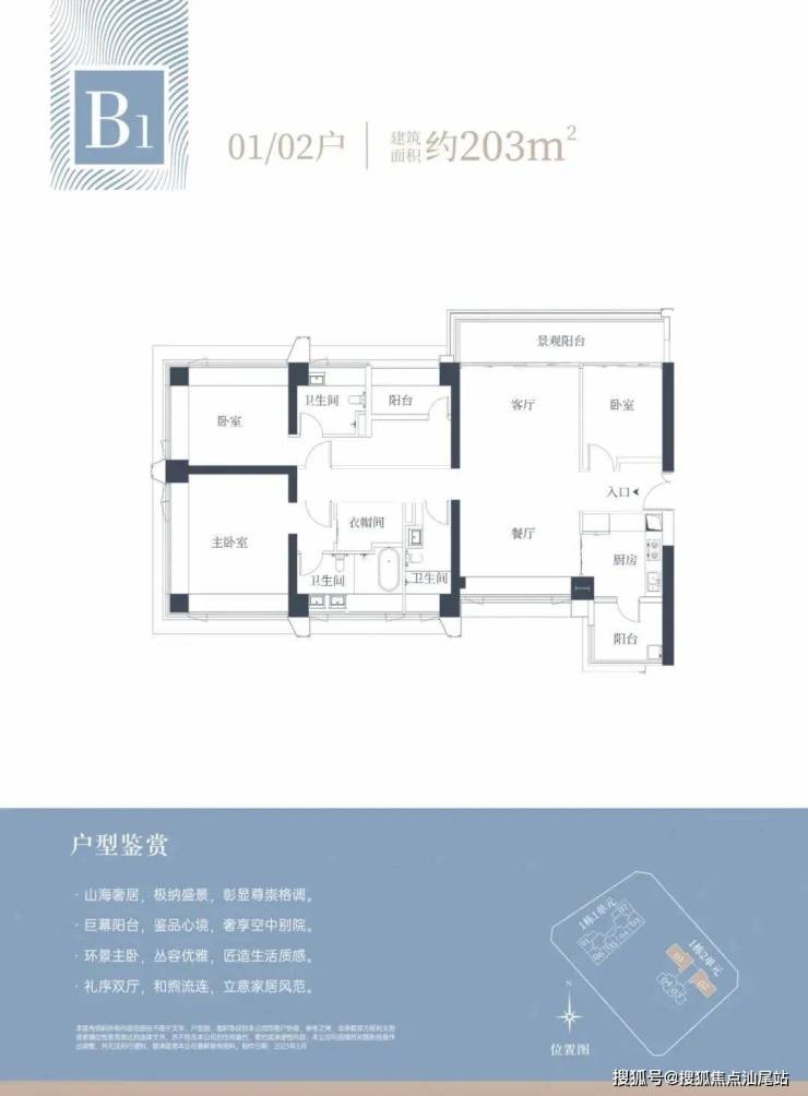 :总价1347万起,南北通透+双主卧套间,但厨房无生活阳台,精装品牌未公示。