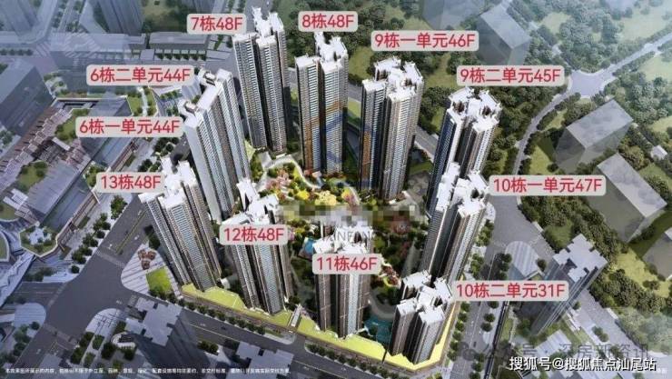 项目共由10栋总高31-48F住宅组成,其中6栋1/2单元住宅44F,7栋/8栋住宅48F,9栋1单元住宅46F,9栋2单元住宅45F,10栋1单元住宅47F,10栋2单元住宅31F,11栋住宅46F,12栋/13栋住宅48F。