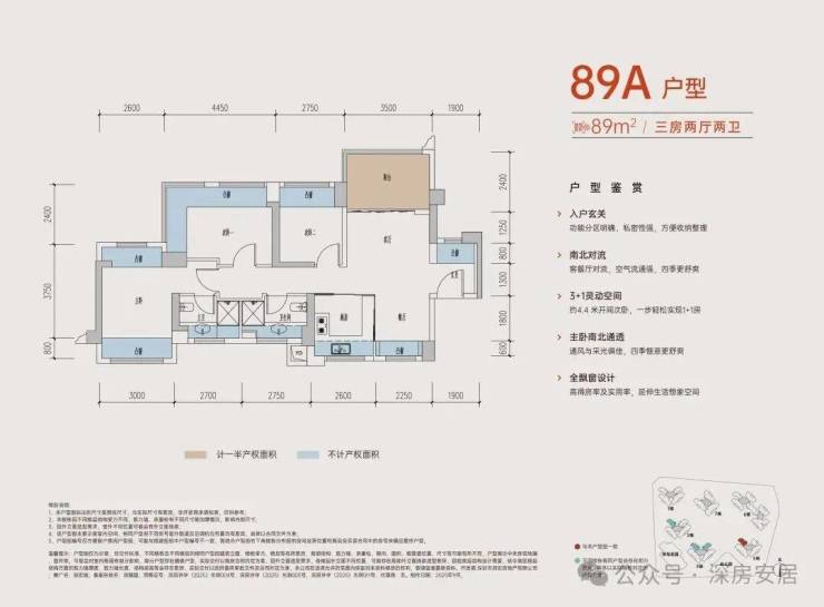 设计的是竖厅格局,进门入户玄关,客厅3.5米开间,LDKB一体化,S墙设计预留冰箱卡槽位,四开间朝南,动静分区,主卧南北双飘窗,全屋7面飘窗,3个卧室分别做到了主卧16.6㎡/次卧9.18㎡/次卧8.16㎡(包含墙体飘窗),U型厨房,卫生间干湿分离,得房率约:96.4%(包含赠送),东南或西南朝向。