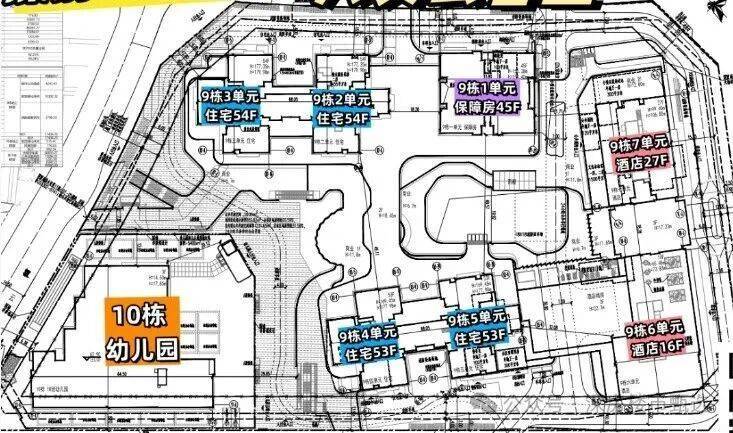 天安云谷里01-03地块,总占地面积约3.45万㎡,总建筑面积约34.5万㎡,计容建筑面积约24.5万㎡,容积率7.11,绿化率40%,共由5栋总高45-54层住宅组成,另外配建2栋总高16-27层酒店,其中9栋1单元保障房45F,9栋2/3单元住宅54F,9栋4/5单元住宅53F,10栋是1所18班幼儿园,配建约1.8万㎡商业。