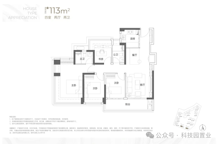 建面约113㎡4房2卫