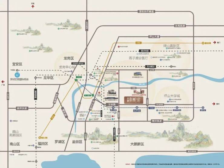 另外,周边还有深大城际坪山站约4公里(在建中)、近深惠城际大鹏支线,通达大湾区重要城市。