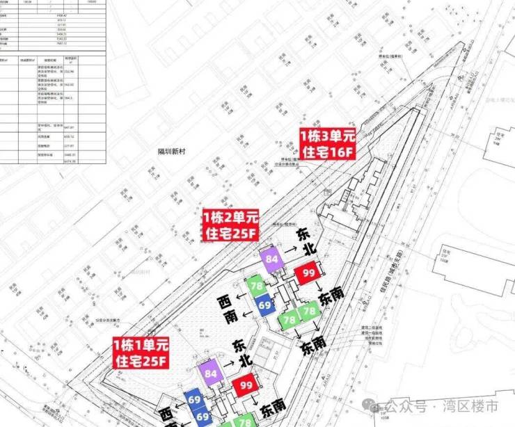 龙华红山,联发新澍雅居预计2026年一季度取证入市,户型相当炸裂,面积有69平的2+1房1卫,79-82平的3房2卫,99平的4房2卫户型,共332套房源,价格方面可以参考附近前期入市的联发臻著雅居,备案均价7.3万/㎡,当时折后均价约6.4万/平,期房精装交付,目前营销中心暂未开放,户型图供参考