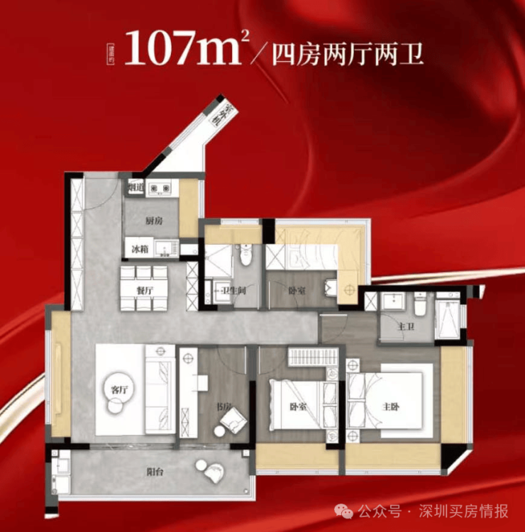 光明区凤凰城板块,中建观玥名邸,总层高32层,2梯6户设计,精装修交付。面积有80-89㎡的3房2厅2卫,107㎡的4房2厅2卫户型,多了一个89㎡横厅3房2卫。项目分栋交付,3/5栋2026年底交付,1/2栋2027年年中交付