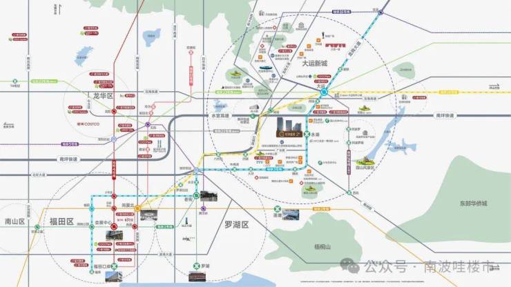3号线:项目直连地铁3号线永湖站,两站即达大运,8站直达罗湖;