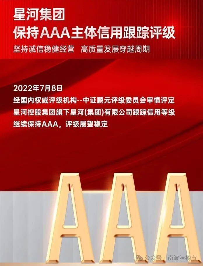 AAA级信用企业:星河控股,连续十一年荣获“中国房地产百强企业”称号,十次荣膺 “中国蓝筹地产”殊荣,获评AAA级信用评级,稳健绿档企业。