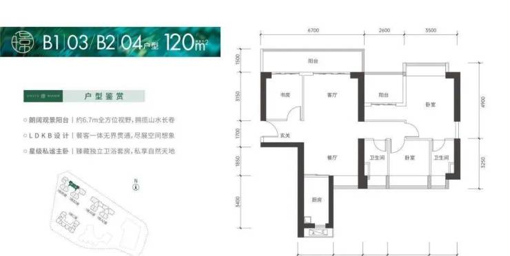 120㎡的4房2厅2卫,设计的是竖厅南北通透格局,客厅4.2米开间,进门入户玄关,LDKB一体化设计,4个卧室分别做到了3.5米/2.7米/2.6米/2.5米的宽度,客厅连接次卧出6.7米长的大阳台,L型厨房,卫生间干湿分离,得房率:75.66%(不含赠送),阳台主朝东北向。