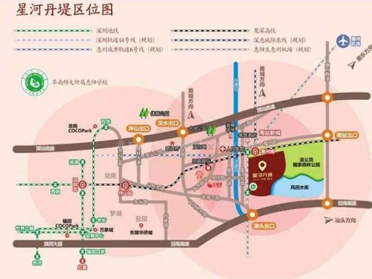 属于惠阳中心城近郊,淡水镇淡澳河以西,东侧临500万平米风田水库,距离惠阳城区1.5-2公里,属于厦深线惠州第一站,交通极为便利。高速公路:深汕高速、东部深惠沿海高速
