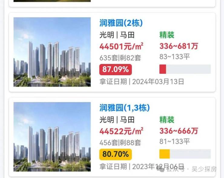 目前在售商品房为一期润雅园和人才房润珑苑,其中润雅园商品房在售面积约81-133㎡3-4房,折后单价3.58-4.54万/㎡,人才房69-89㎡2-3房,均价为24294元/㎡。