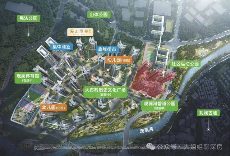 金光华溪山禾玺,这一宏伟项目由金光华集团精心打造,规划分为6个地块进行开发。全部建成后,项目将涵盖29栋豪华住宅、2栋现代化写字楼、2所高品质幼儿园、1所九年一贯制学校以及观澜体育馆,周边更有7所公园环绕。这一综合性百万大城将高端住宅、优质教育资源、丰富绿地、文化设施和商业配套完美融合,为居民提供一个集居住、教育、休闲、娱乐于一体的理想生活圈。