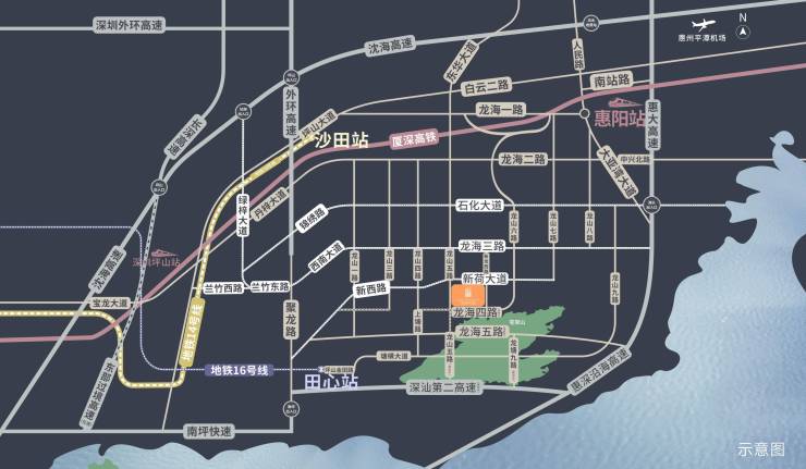 ➭4大轨道:地铁14号线、16号线、厦深高铁、深大城际(在建);