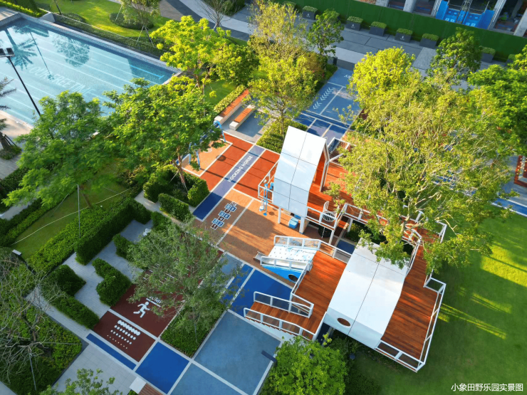 3大儿童游乐园,其中小象田野乐园已开放,占地约680㎡,拥有约20种游玩设施,同时配置了休闲座椅,可供成人更好的看护;地面采用具有优良弹性和抗滑性能的国标EPDM橡胶地垫,场地周边种植多样化的植物,保障孩子们健康快乐的玩耍。