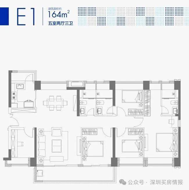 合正方洲瀚府共由6栋总高46-53层的住宅组成,其中1栋1单元/2栋1/2单元住宅47F,1栋2单元住宅46F,3栋1单元住宅53F,3栋2单元住宅52F,5栋是1所18班制幼儿园,园区内规划有多个儿童游戏场地,羽毛球场,足球场,总规划1508户,全部都是商品房,其中1栋2单元3梯5户,其它栋数都是3梯6户设计。