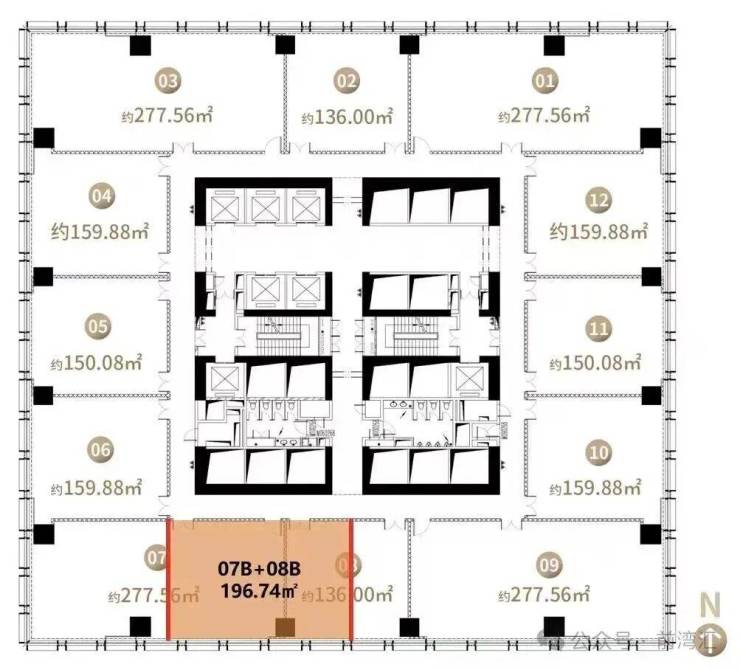 标准层面积:2,400-2,500 ㎡