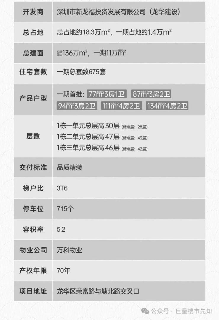 龙华观澜,玖珑臻境计划将在2025年12月取证入市,本次首推1栋1单元,共168套房源,面积有78㎡的3房1卫,86-95㎡的3房2卫,113㎡的4房2卫户型,