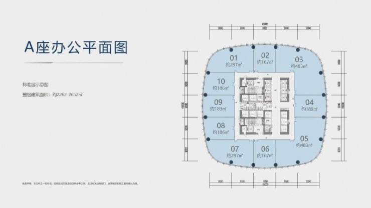 【A座】300㎡起租,总面积7.9万㎡,总高192m,39层