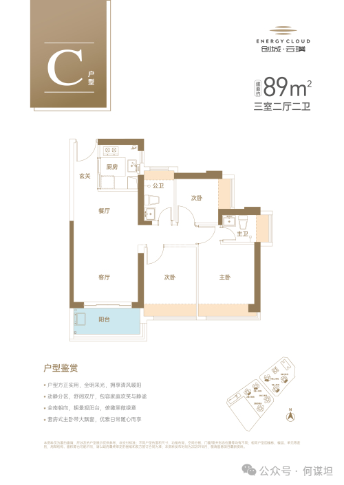 【建面89㎡3居】196-216万,3室2厅2卫, 东南·西朝向
